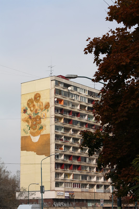 Es curioso ver como la gente (o el ayuntamiento o whatever) decora los edificios para hacerlos algo atractivos a la vista, algunas incluso con cuadros de Van Gogh.